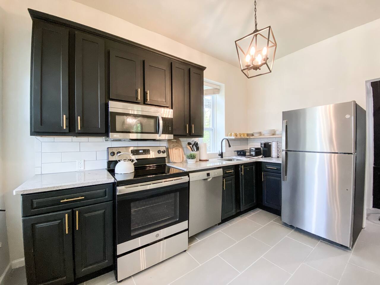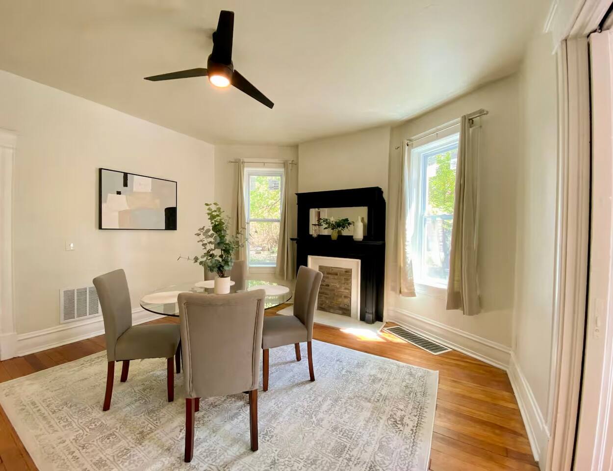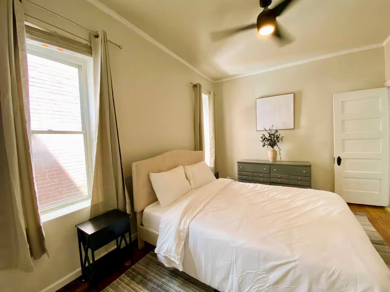 Living Room • Bright and cozy with plenty of natural light • TV above the fireplace and a coffee table for relaxing Dining Room • Table with seating for up to 4 guests • Great for family meals or enjoying local takeout Kitchen • Fully stocked with cookware, dishes, utensils, and more • Stainless steel appliances including refrigerator, convection oven, toaster oven, Keurig single pod coffee machine, microwave, and dishwasher Bedroom 1 • Queen-size cooling memory foam mattress • Office desk, mounted TV, 2 closets, and a mix of memory foam and down alternative pillows Bedroom 2 • Queen-size cooling memory foam mattress • Mounted TV, large dresser, and closet Bathroom • Clean and stocked with fresh towels and essentials
