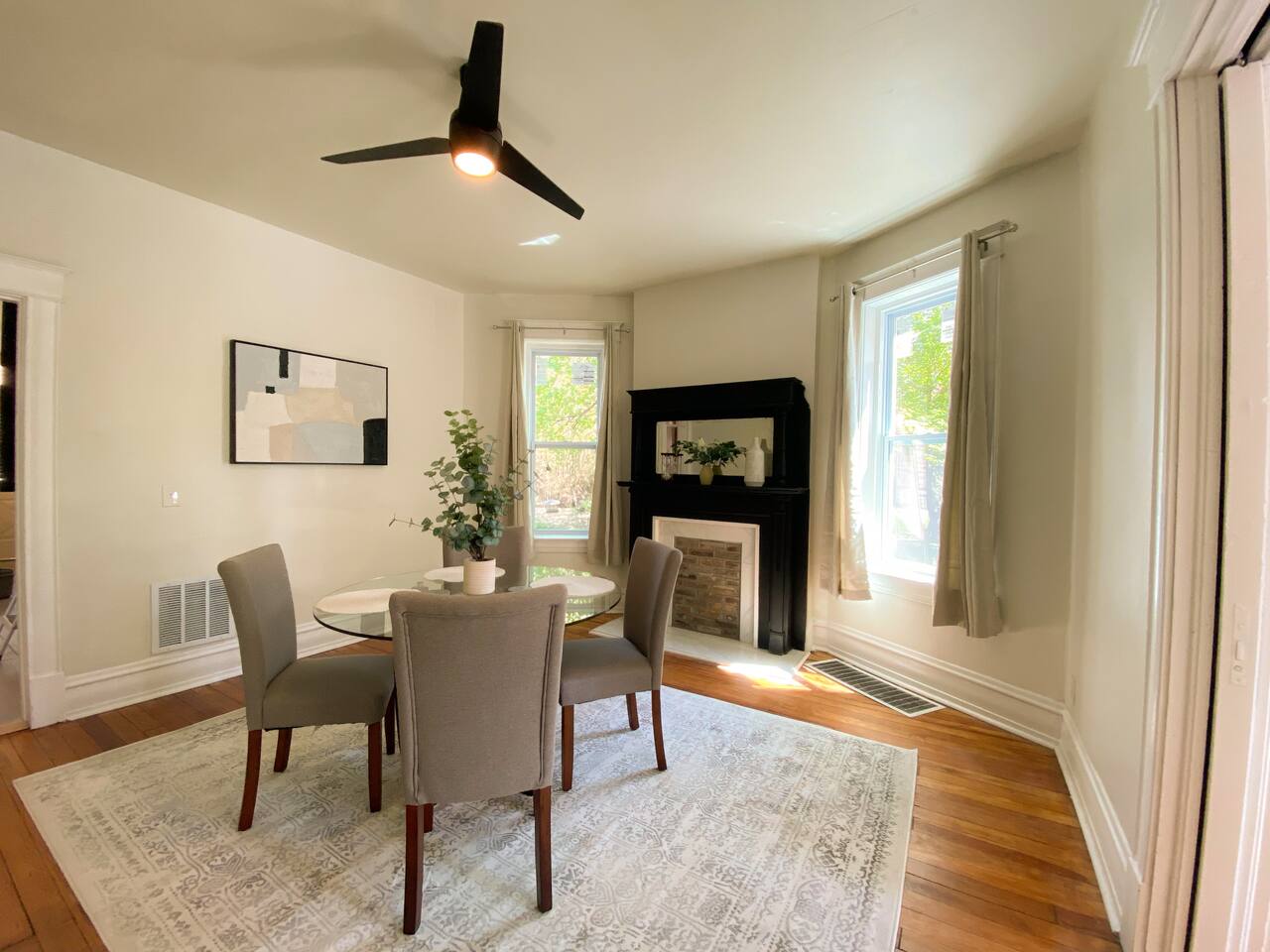 • Private first-floor unit • Access to backyard, front yard, side yard, and parking pad