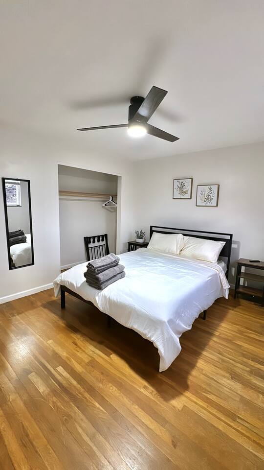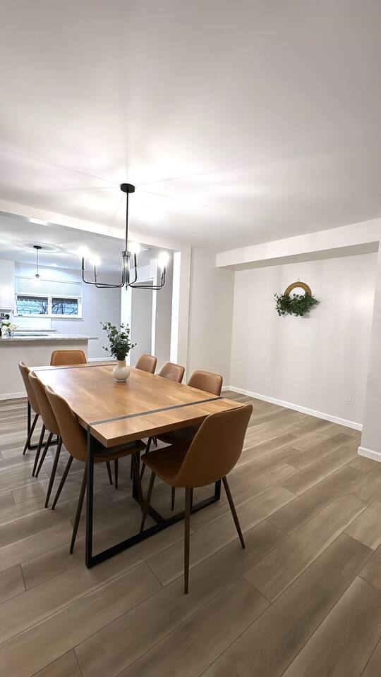 Our home features 5 spacious bedrooms and 3.5 bathrooms, providing comfort for groups of up to 12 guests. Each bedroom is equipped with a brand-new queen-sized memory foam mattress, nightstands, and a large closet with hangers. The massive kitchen and dining room (seats 8) are perfect for family meals or group gatherings. Whether you're cooking a meal or just enjoying each other's company, this space is designed for comfort and convenience. • Newly renovated and fully equipped for home-cooked meals • Includes cookware, dishes, utensils, stainless steel appliances, and a Keurig single pod coffee machine for your morning brew • Comfortable Bedrooms: Relax on brand-new memory foam mattresses and enjoy fresh linens and towels, offering the ultimate in luxury and comfort.